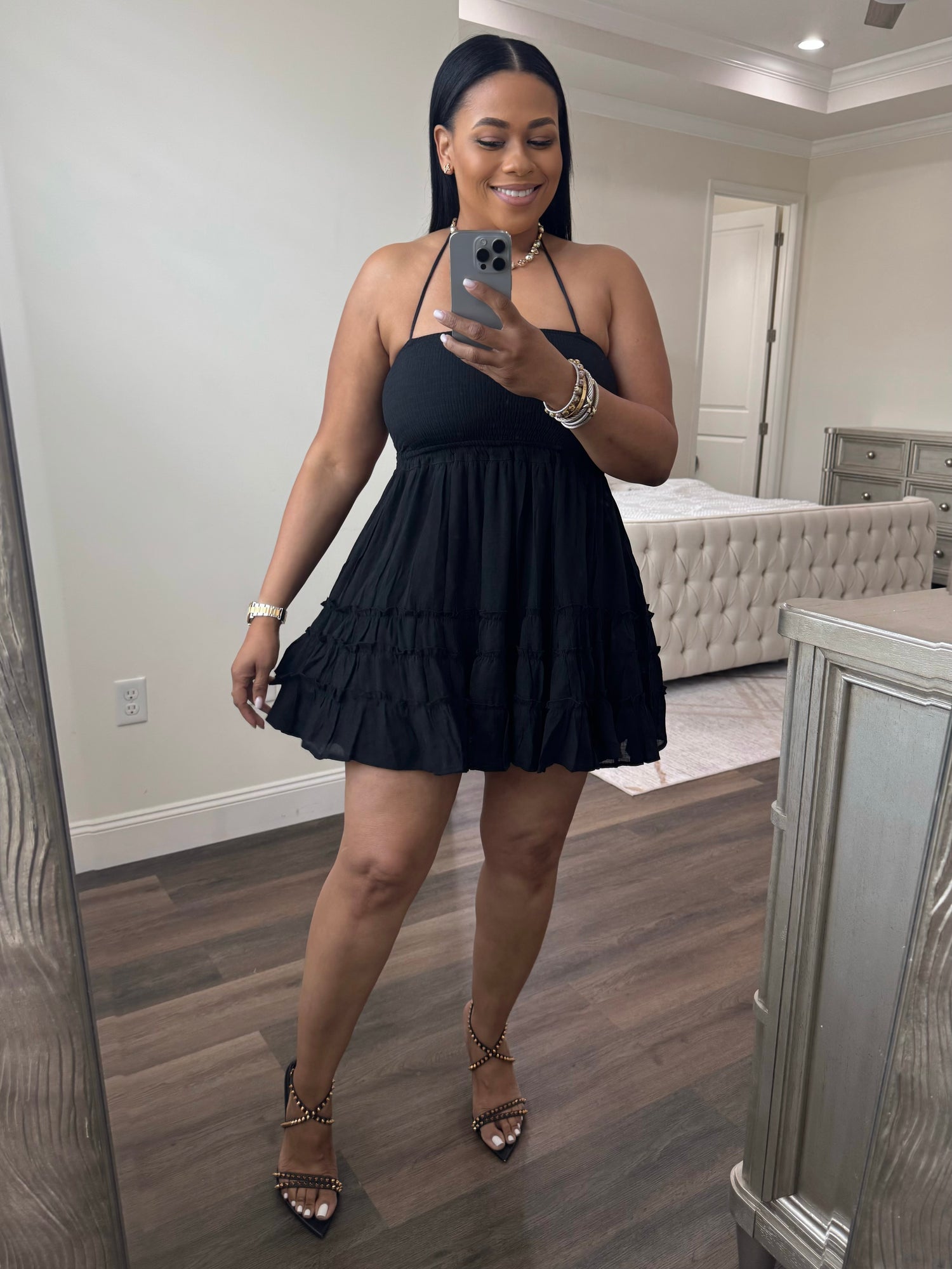 Women's Lux Racer Back Mini Pleated Tennis Dress with Cups (Black)