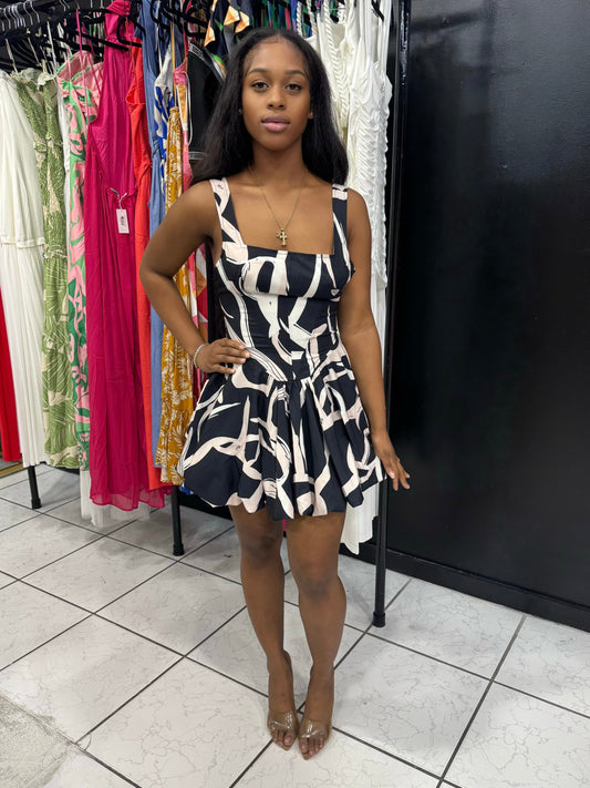 ARTISTRY BUBBLE DRESS (BLACK-IVORY)