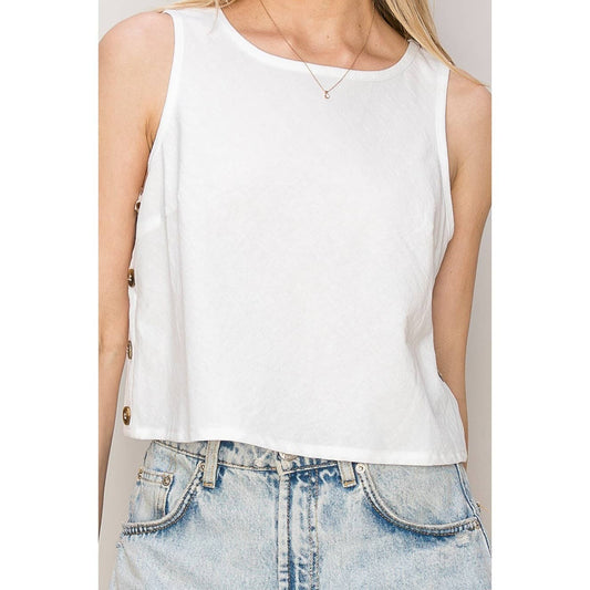 Side-Button Sleeveless Top