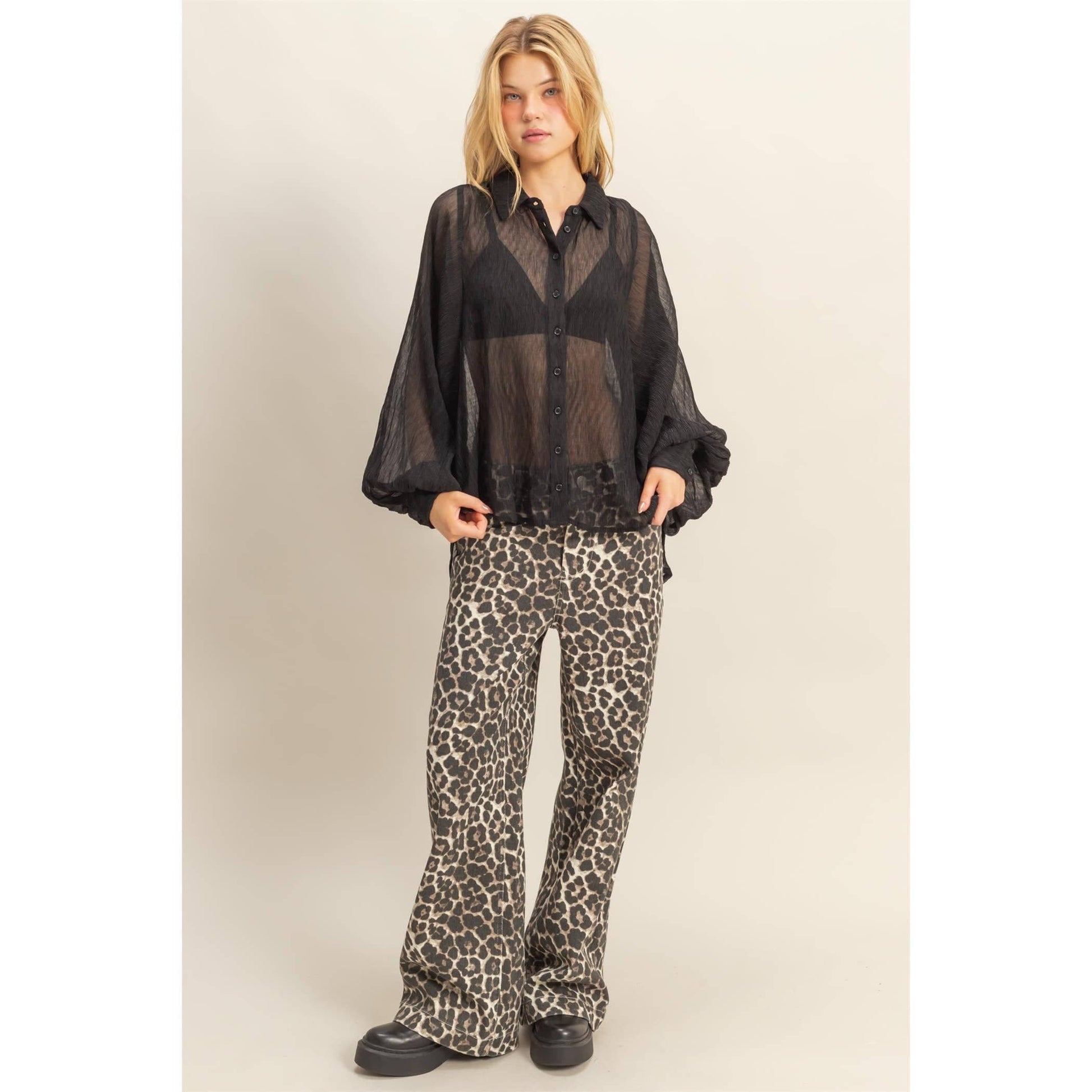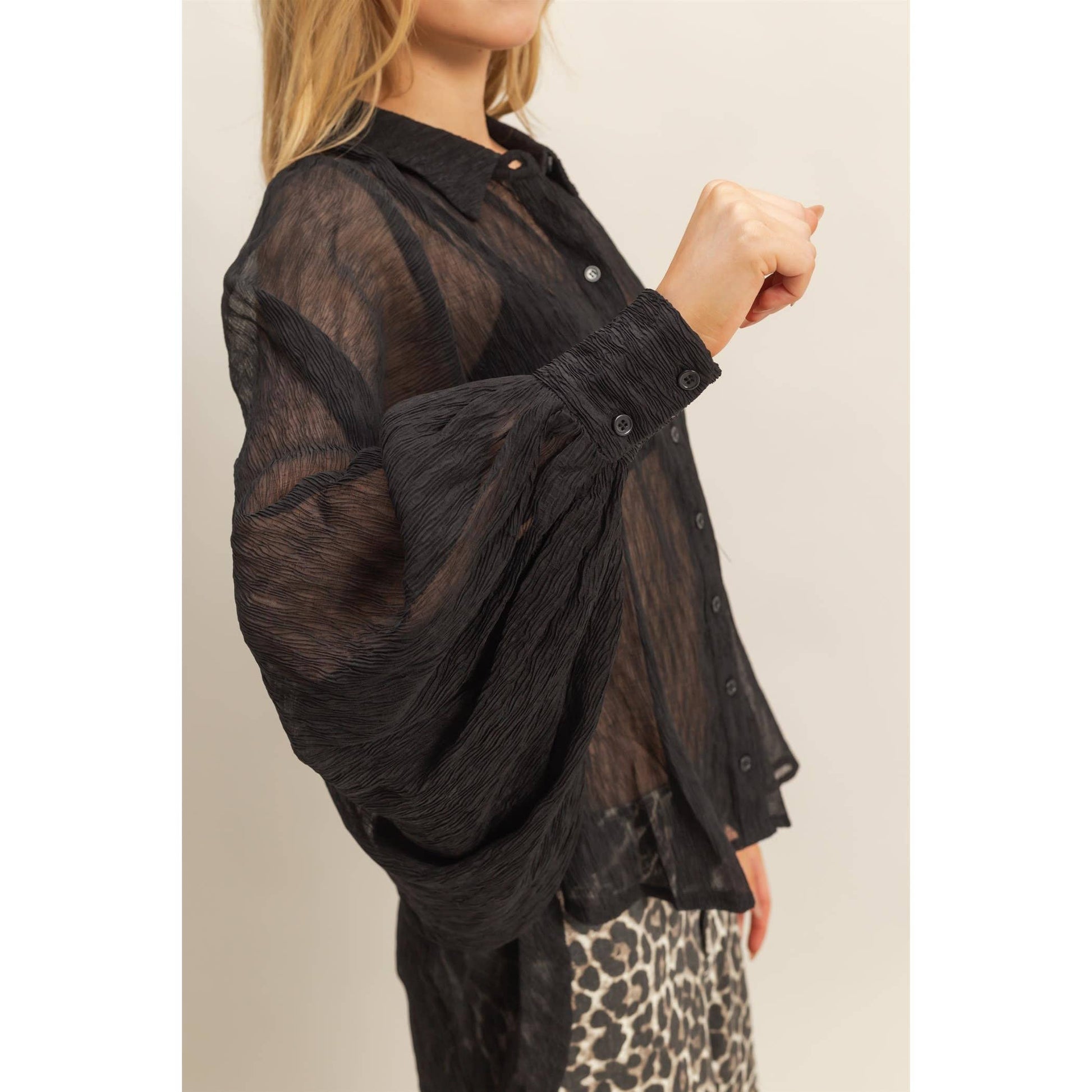 This Stylish Textured Button-Down Shirt Exemplifies Laid-Back Elegance With Its Effortlessly Chic Silhouette. Crafted With A Subtle Sheen, The Shirt Features A Relaxed Fit, Enhancing Its Casual Yet Sophisticated Appeal. The Elongated Cuffs, Tailored Collar, And Full Button Placket Underscore A Sense Of Refined Style, Making It An Essential Piece For Any Wardrobe. Model Is 5' 7" Tall, 32" Chest, 25" Waist, 34" Hips And Wearing A Size Small Imported. Designed in the USA