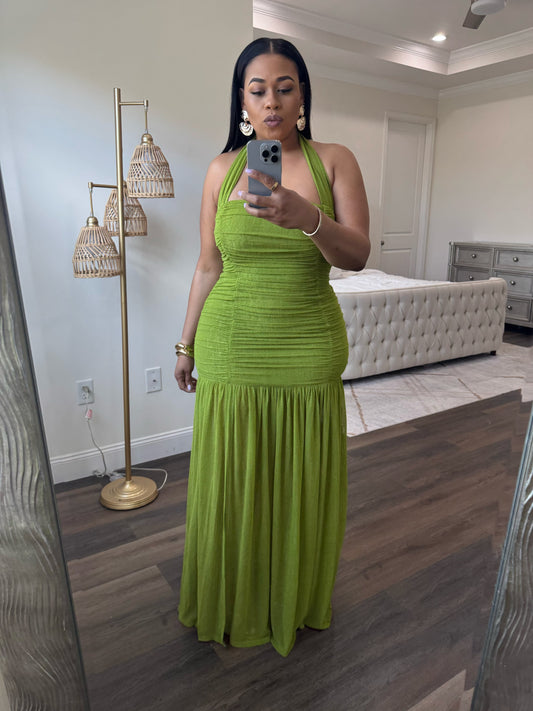 DEEP V PLAIT STRAP MAXI DRESS (LIME)
