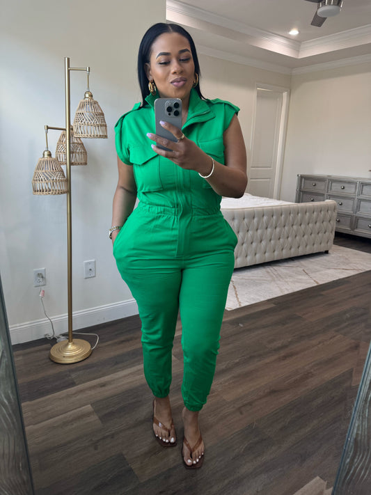 Mock Neck Sleeveless Jogger Jumpsuit (Emerald Green)