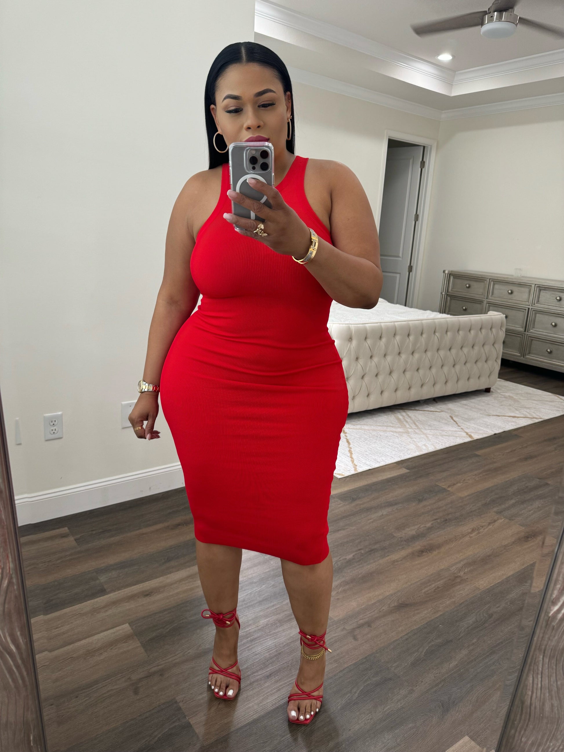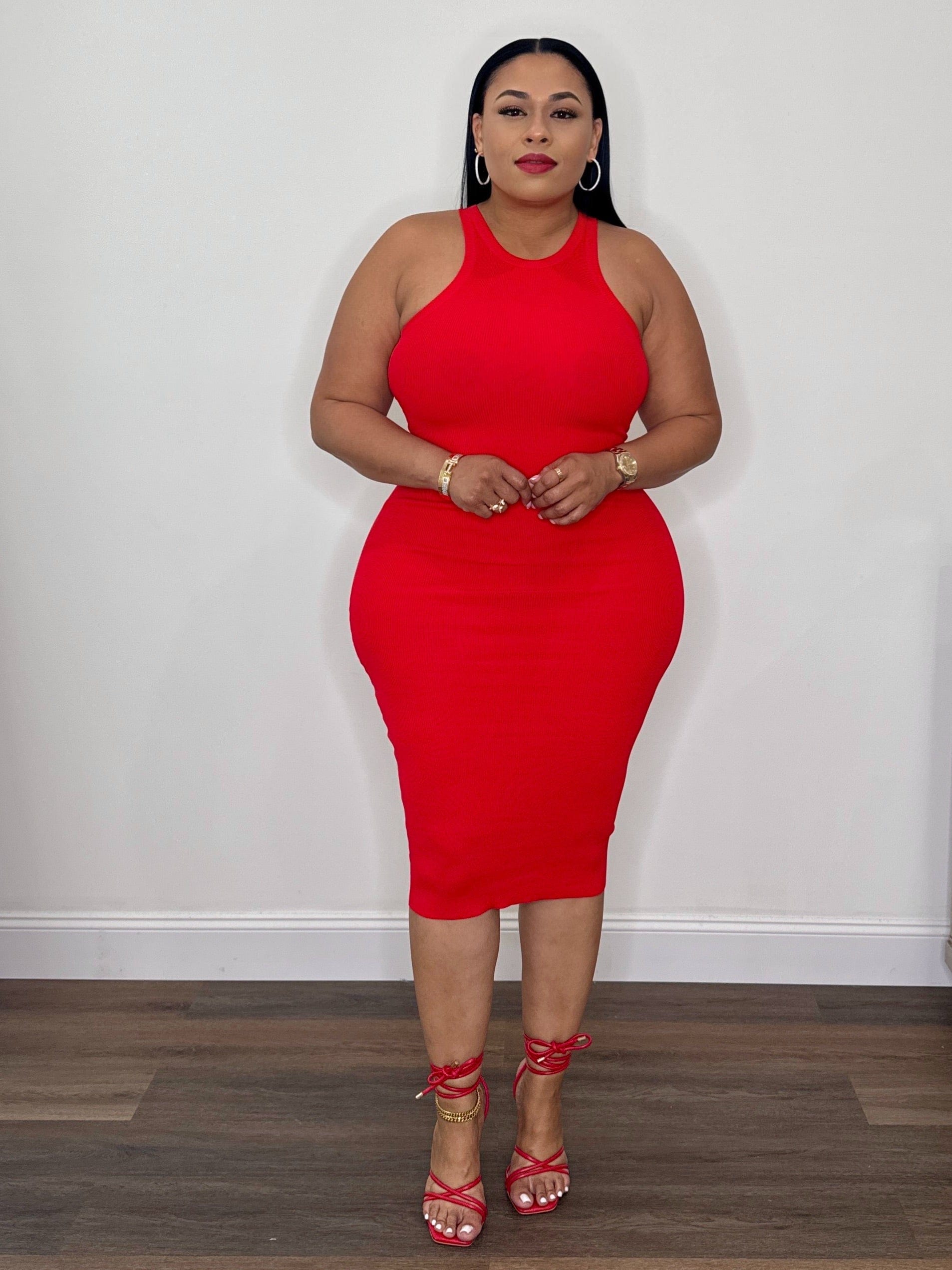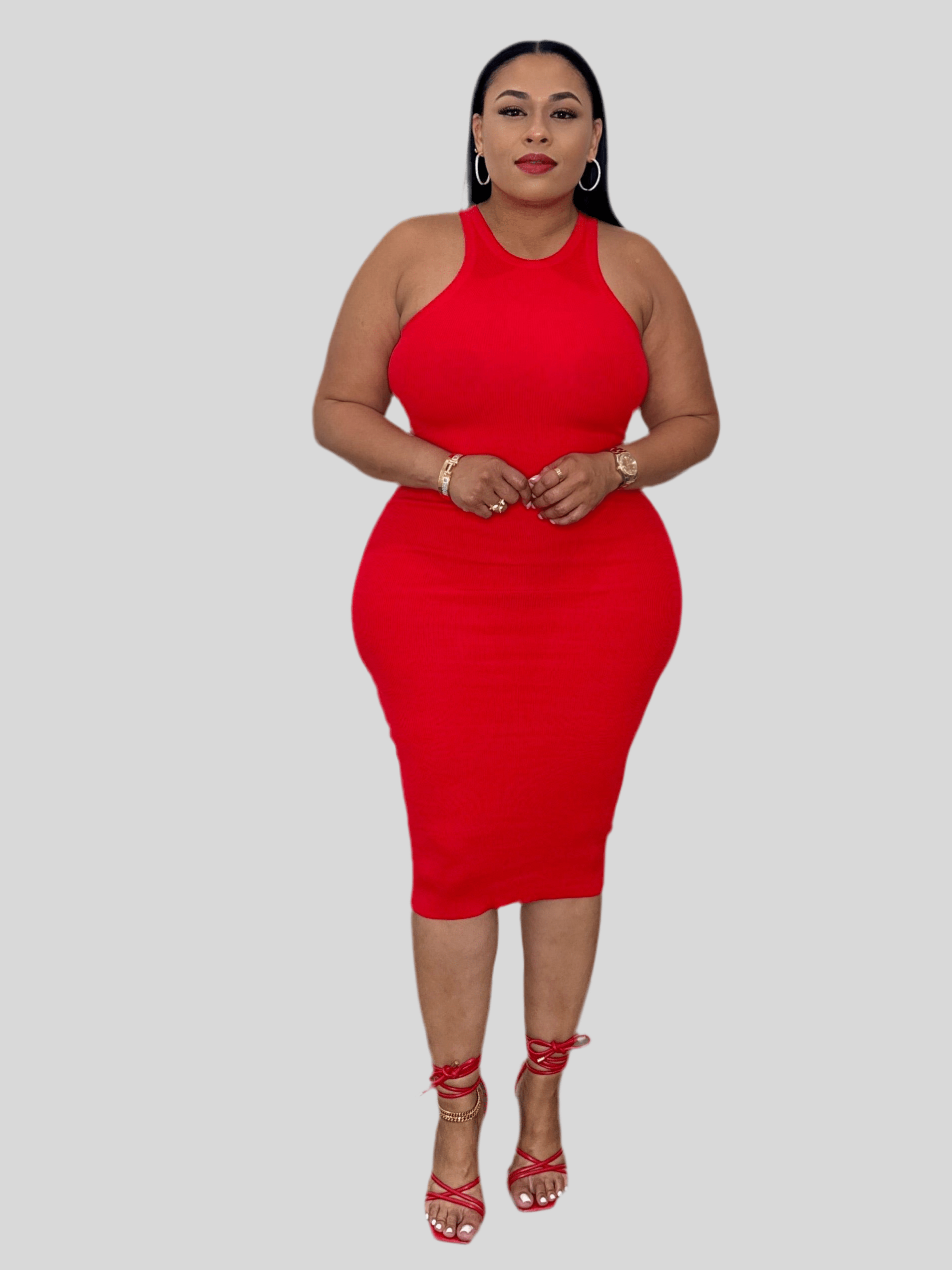 Experience the ultimate combination of comfort and style with our racer neckline knit stripe midi dress. Made from premium fabric, this form-fitting dress hugs your curves and enhances your silhouette. Perfect for any occasion, it's versatile and chic! Pair it with sneakers or heels.