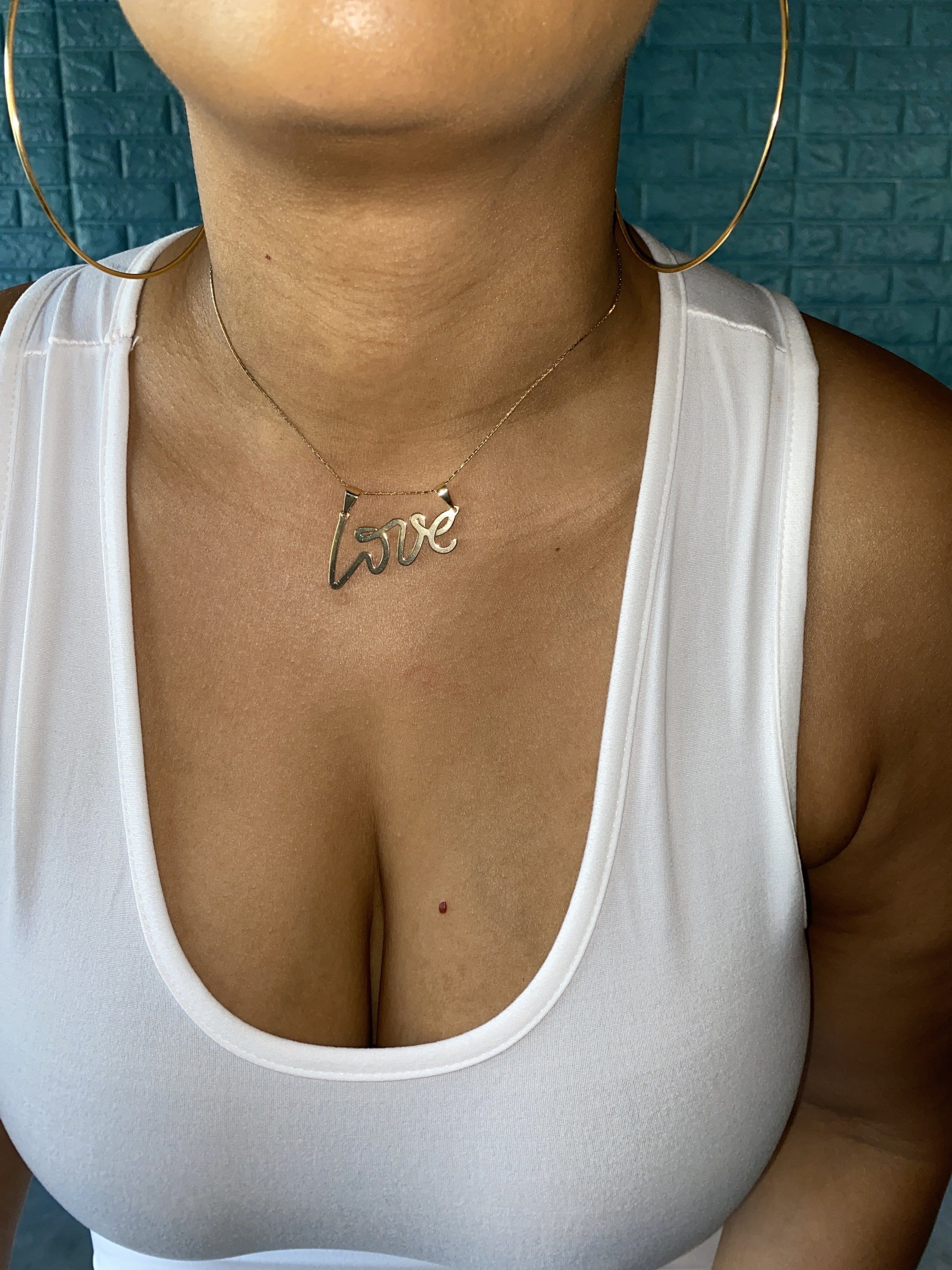 This necklace is one of our best sellers.  It is gold plated, the model is wearing an 16" chain.  Pendant and chain included. Premium quality.