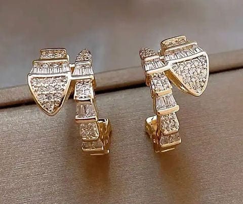 Gold Serpenti Baguette Moissanite Stone Earrings