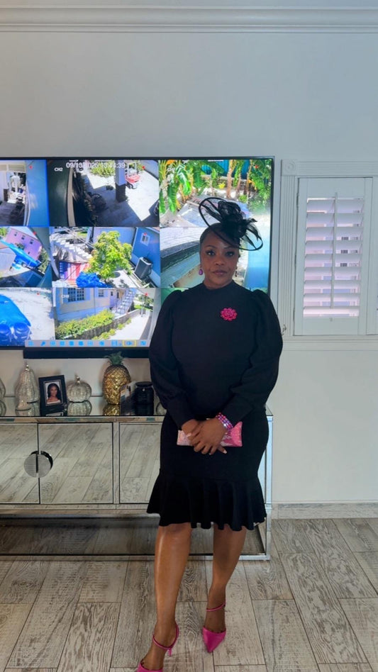 Women's Lux Racer Back Mini Pleated Tennis Dress with Cups (Black)