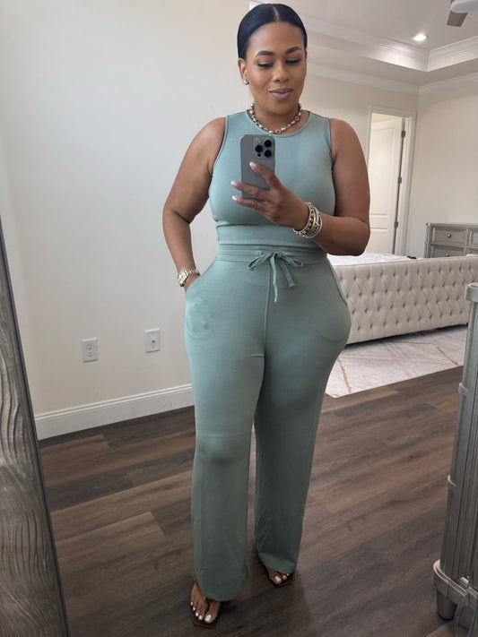 Sleeveless Waist Band Detail Jumpsuit (SAGE)