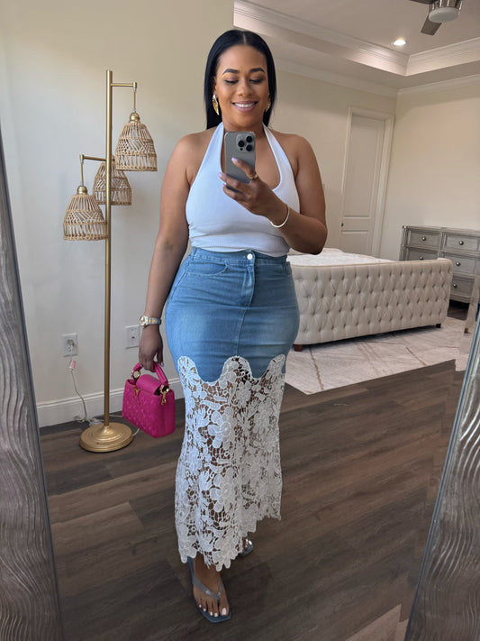 Halter Snug Fit Top And Skirt Set (WHITE)