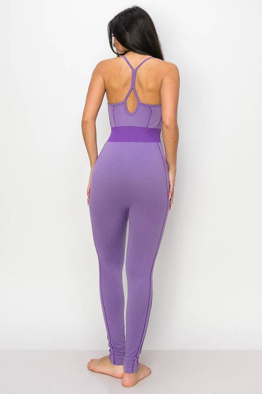 RIBBED SEAMLESSS FITTED JUMPSUIT (ULTRA VIOLET)