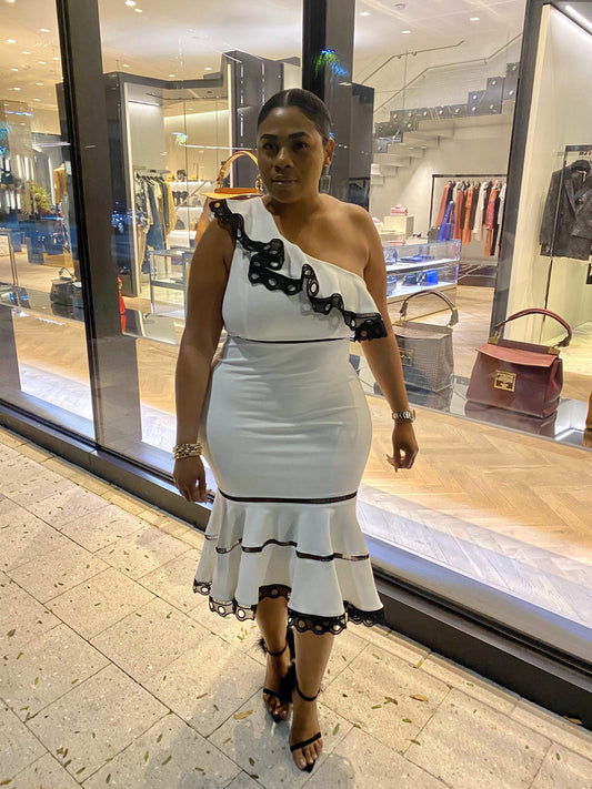 Asymmetrical One Shoulder Maxi Dress (WHITE)