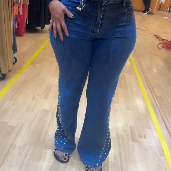 GOLD STUDDED DENIM WIDE LEG